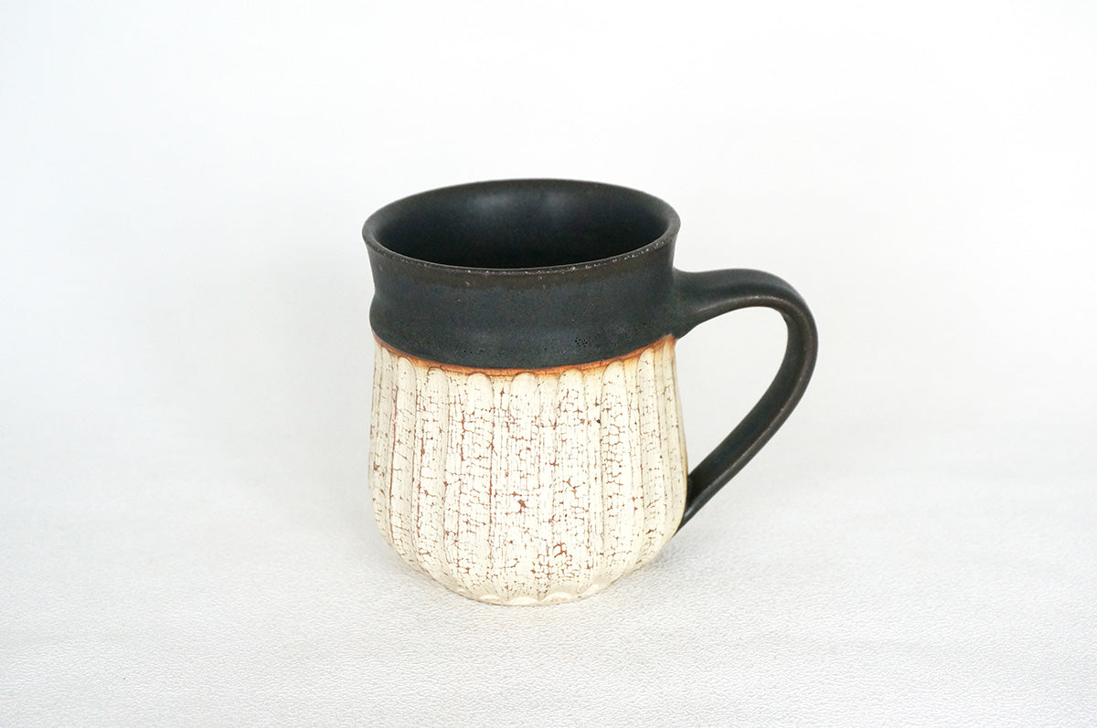 崇心 009 白梅花皮 しのぎマグカップ 黒 ¥6,600 (税込)