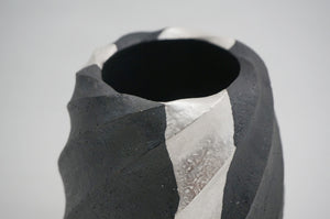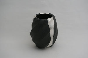 100 ブラック Spiral 銀彩花器 3  MAKOTO OKI Spiral silver vase